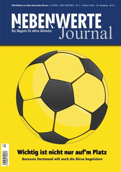Ausgehend von € 4.09, die am 14.12.2014 notiert wurden (s. NJ 1/15), gab es bis am 14.01.2016 mit € 4.02 einen ähnlichen Kurs, bevor die grassierende Angst an den Börsen auch die Aktie des einzigen börsennotierten Fußballvereins hier zu Lande ohne neue Meldungen mit sich riss und auf € 3.60 drückte. Bis zum Redaktionsschluss kam es zu einer leichten Erholung auf € 3.74. Das ermäßigte Niveau bietet u. E. damit noch mehr Chancen als zuvor.