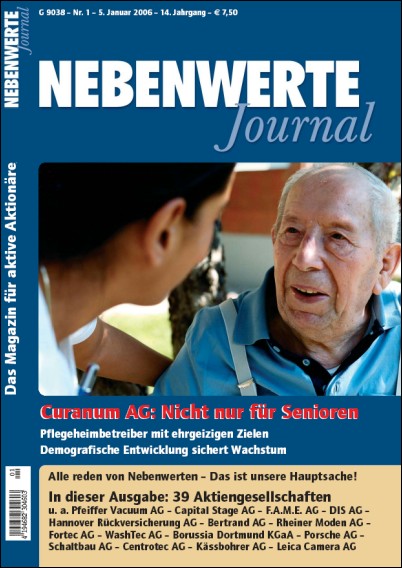 Zuletzt berichteten wir in NJ 8/05 bei einem Kurs von € 4.33, wie sich die Aktie der Curanum AG, getrieben durch eine starke Gewinnentwicklung im ersten Quartal und eine Ausweitung des Free Float, die neue institutionelle Investoren anlockte, seit Jahresanfang mehr als verdoppeln konnte. Diese Entwicklung hat sich auch im zweiten Halbjahr fortgesetzt.