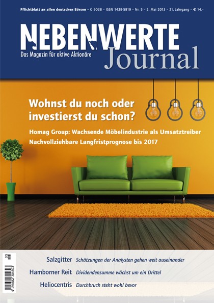 Nachdem das Ergebnis im Jahr 2011 negativ ausgefallen war, entschloss sich die Homag Group, mit dem eisernen Besen auszukehren. Offenkundig mit Erfolg, wie ein Blick auf 2012 zeigt, denn es gelang die Rückkehr in die schwarzen Zahlen. Und auch die Aktionäre erhalten mit € 0.25 je Aktie wieder eine Dividende (Rendite 1.8 %), nachdem sie im Jahr 2011 leer ausgegangen waren. Da die Perspektiven insgesamt stimmen, dürfte auch die Aktie langfristig profitieren.