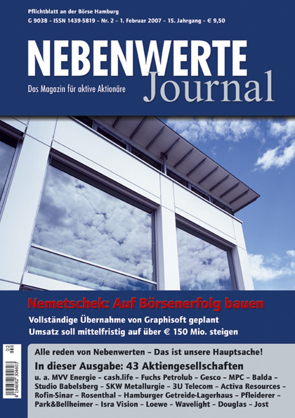 Welchen Einfluss die Übernahme von Graphisoft auf die 2006er Zahlen hat, wissen Anleger erst am 23.03.2007 nach der Bilanzpressekonferenz. Eines scheint aber heute schon sicher: Das Umsatzziel von € 100 (98.8) Mio. ist übertroffen worden. Auch der Jahresüberschuss mit erwarteten € 14.4 (11.7) Mio. sowie das in NJ 1/07 prognostizierte Ergebnis je Aktie von € 1.50 (1.21) dürften auch ohne Akquisitionen erreichbar sein.