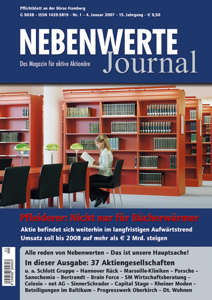 Seit unserer letzten Besprechung der Pfleiderer AG in NJ 8/05 sind nun knapp anderthalb Jahre vergangen. Wer damals zu Kursen um € 5.- eingestiegen ist, kann sich heute über 300 % Kursgewinn freuen. In der Spitze waren es gar 400 %. Da der Holzwerkstoff-Konzern weiter organisch und anorganisch wachsen will, scheinen höhere Kurse aus unserer Sicht nur eine Frage der Zeit zu sein.