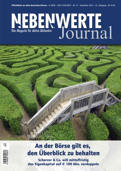 Die Kölner Beteiligungsgesellschaft Scherzer & Co. AG verfolgt das Ziel, ihr Vermögen langfristig aufzubauen. Mittelfristig will das Vorstandsduo Dr. Georg Issels und Hans-Peter Neuroth das Eigenkapital, die harte Währung jeder Beteiligungsgesellschaft, auf € 100 Mio. verdoppeln.