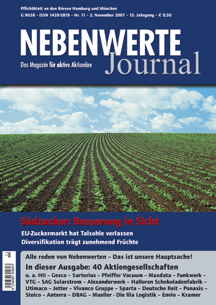 Zu den wenigen Gesellschaften aus dem MDAX, deren Börsenwert in den vergangenen zwei Jahren deutlich gesunken ist, gehört die Südzucker AG. Da sich die Ergebnissituation in allen Segmenten auf Sicht von drei Jahren wohl deutlich verbessern dürfte, ist wieder mit einem steigenden Aktienkurs zu rechnen.