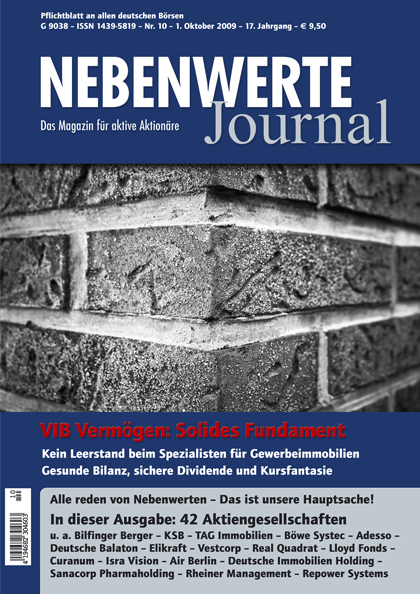 Immobilienaktien zählten in den vergangenen zwölf Monaten vor dem Hintergrund der tobenden Finanzkrise nicht gerade zu den Börsenlieblingen. Eine Ausnahme bildet die VIB Vermögen, die dank konservativer Geschäftspolitik besser dasteht als je zuvor. Mit einem Abschlag von 40 % auf den Nettoinventarwert von € 11.46 per 30.06.2009 sowie einem KGV 2009e von 9.7 ist die VIB-Aktie trotz der Kursverdoppelung seit März 2009 keinesfalls überbewertet.