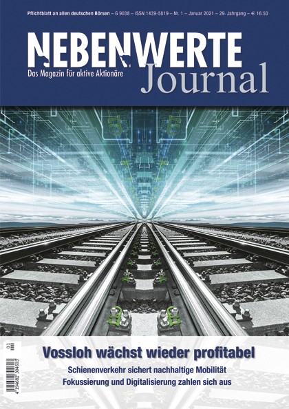 Als wir uns Ende Oktober 2020 entschieden, der Vossloh AG die nächste Titelgeschichte zu widmen, war der Kurs seit Juli um ein Drittel von € 41.70 auf 30 gefallen. Inzwischen ist der Verlust mit aktuell € 41.35 jedoch wieder fast ganz aufgeholt worden. Damit wurde zwar schon ein Teil, aber noch nicht das gesamte, aus unserer Sicht vorhandene Potenzial gehoben.